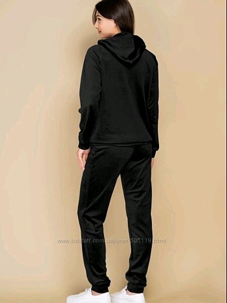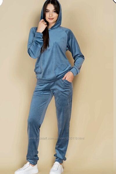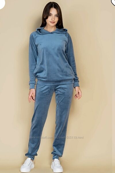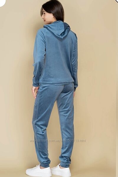 Стильний жіночий костюм із м´якого, ніжного та досить якісного велюру. Складається з джемпера і штанів. Джемпер прямого силуету:- затишний практичний капюшон;