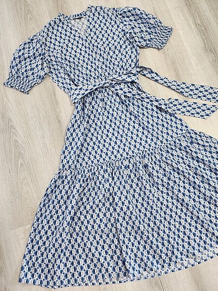 Красивое платье миды с бело-голубым принтом Roman 100%вискозаР.10-12,ML.