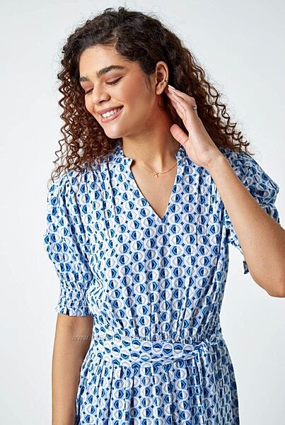 Подробное описание: Платье миди с принтом Roman Англия рукава фонарики