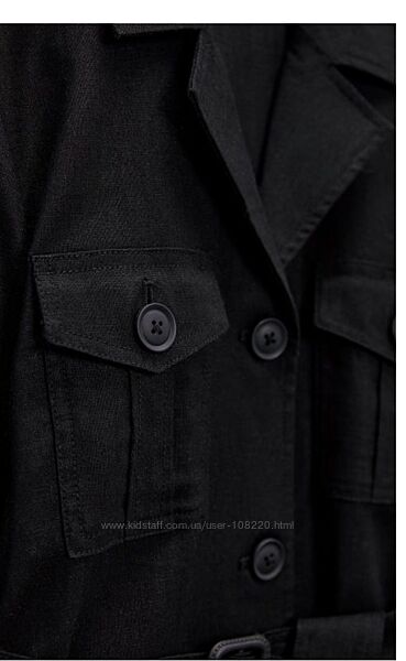 Стильний піджак Zara із змішаного льону та бавовни без підкладки. Комір з лацканами, довгі рукави. Передні накладні кишені із клапаном. Застібається на гудзики, пояс можна знімати51% льон, 49% бавовна