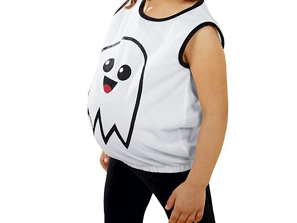 Карнавальний костюм привида від Німецького бренду Halloween. Складається з футболки та шапочки. Футболка ззаду на липучках, спереду наповнена синтепоном для надання об´єму.Заміри: надаємо по запиту