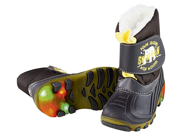 Чоботи-сноубутсі LUPILU® з підсвічуванням. З класним мерехтливим ефектом – кожен крок змушує підошву світитися. М´яка, тепла внутрішня підкладка Покриття підошви алюмінієвим шаром для оптимальної теплоізоляції Найкраща видимість завдяки світловідбивним елементам 3M Scotchlite™. Міцна профільована підошва З практичною липучкою для легкого надягання та знімання. Підсвічування може не працювати, оскільки у процесі доставки може розрядитися поживний елемент. Не працююча підсвітка не вважається браком.Заміри: Устілка: 15,5 см