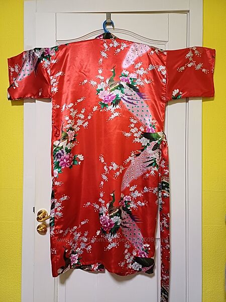 Подробное описание: Халат кімоно з поясом, довжина 114 см.