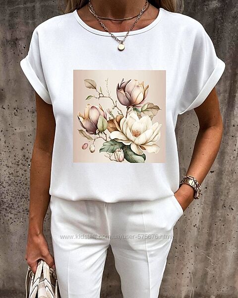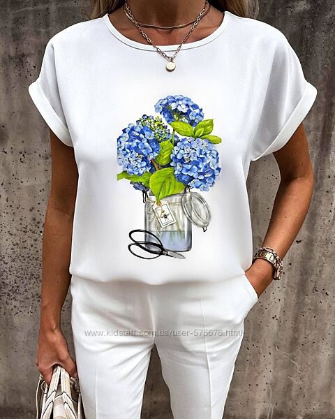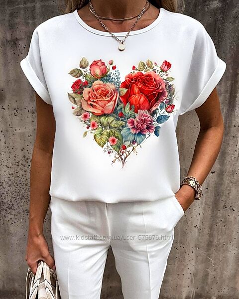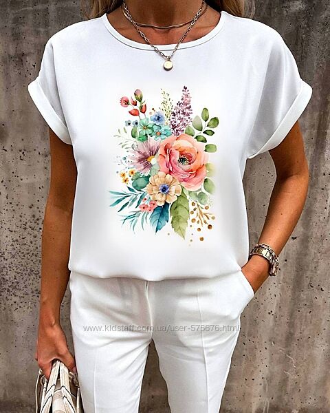 Блузка з красивим вирізом у вигляді крапельки на спині. Малюнок стильно поєднується під будь-який образ.Тканина софт Туреччина