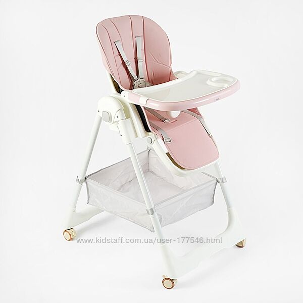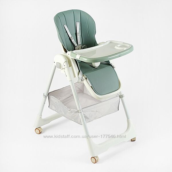 Матеріал оббивки (м`який PU) не промокає і добре миється. Стійкість стільця забезпечують широкі, регульовані по висоті ніжки. Гальма на задніх та передніх колесах забезпечують високу стійкість стільця на одному місці. Він дуже легко складається і займає мінімум місця у квартирі.