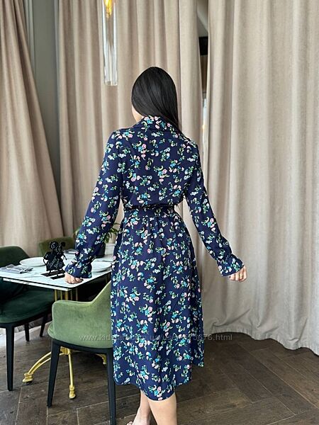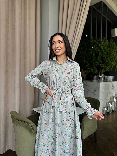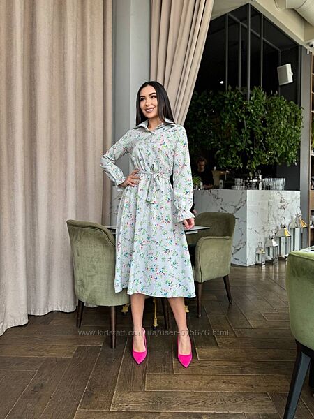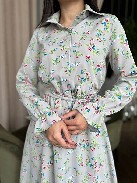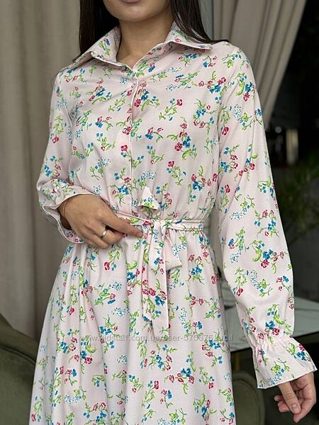Сукня міді софтМодель на функціональних кнопках, талія на резинці , англійський комір.
