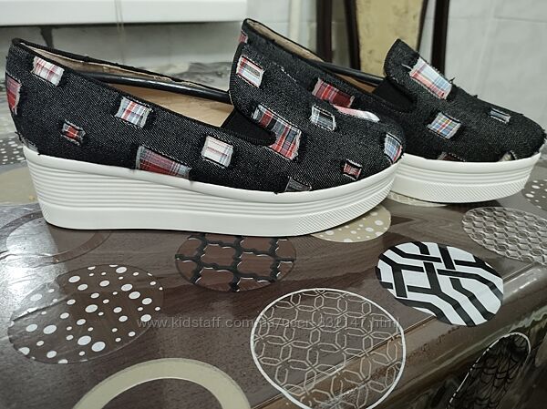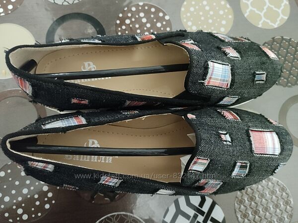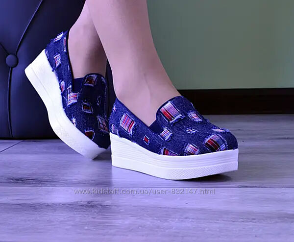 Подробное описание: Мокасіни сліпони джинсові на танкетці
