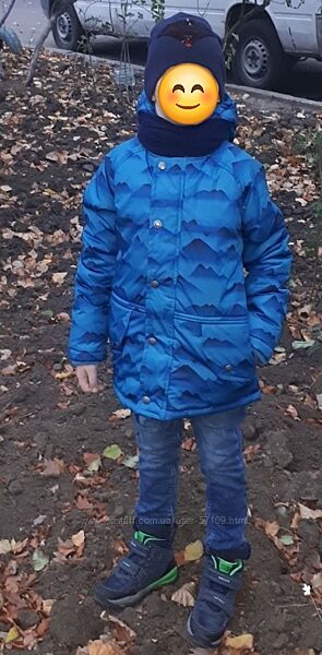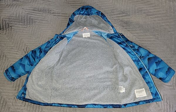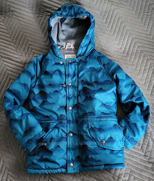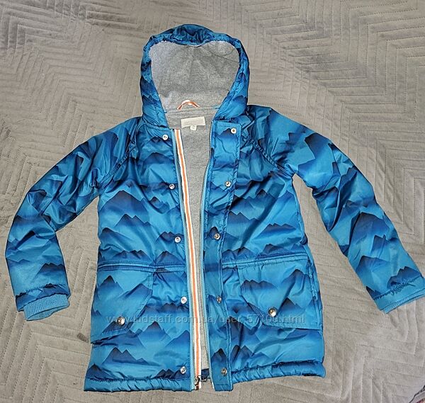 Классная теплая курточка Gymboree в размере 8 лет, полномерная.Подкладка флисовая,в рукавах доп.манжетики,на молнии+ планка на кнопках.Капюшон несъемный, утеплен флисом, сверху есть резиночка для плотного прилегания.Подойдет на холодную осень-весну и еврозиму.Длина от плеча 56см, рукав от капюшона - 57-58см, пог - 42см.