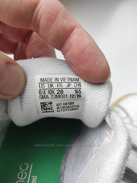 Кеди Adidas 28 розміру, 17,5 см устілка. Застібка – ліпучка. На п´ятках є потертості, на фото видно. Виробник: В´єтнам. Відправляю укрпоштою чи новою поштою