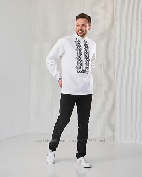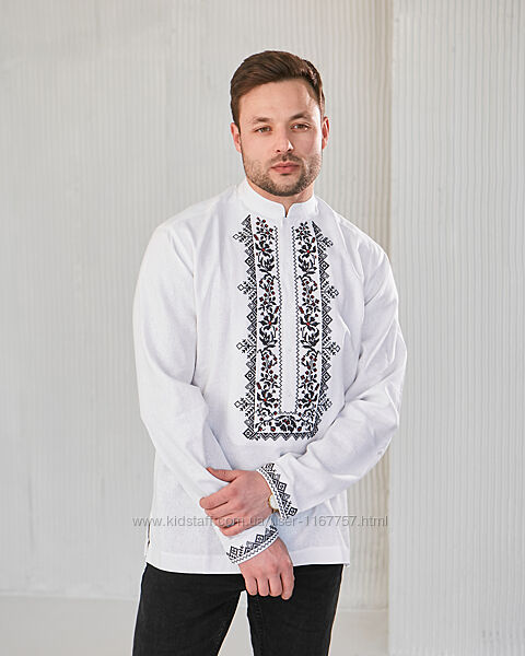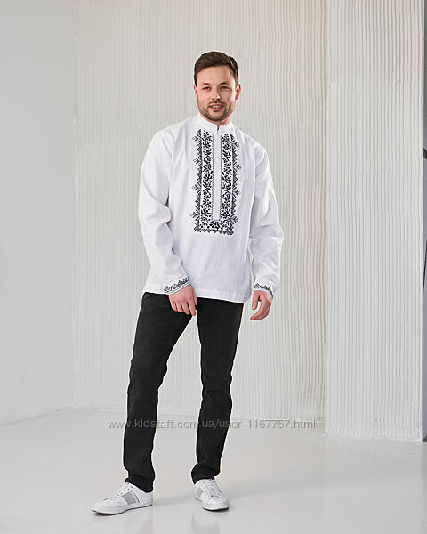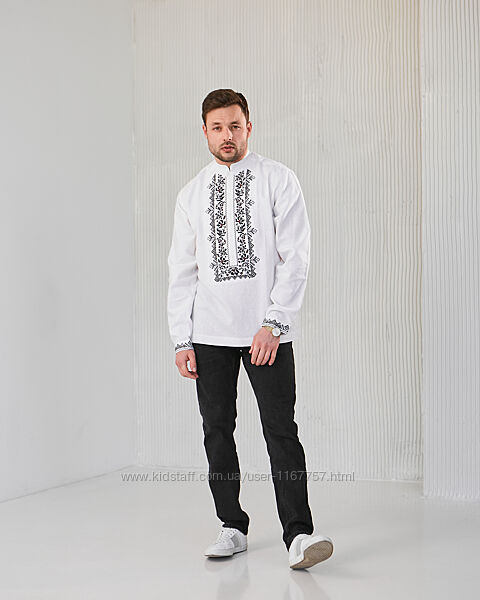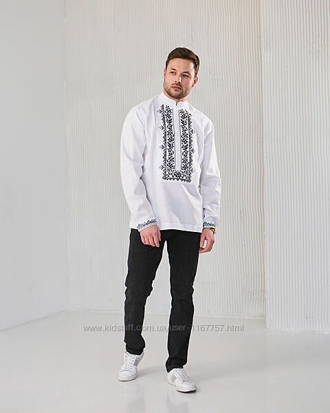 Подробное описание: Чоловіча вишиванка Сокальська біла з чорною вишивкою