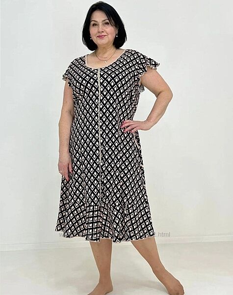 Красивий, зручний та якісний жіночий халат. Він пошитий з якісного полотна кулір - реактив(бавовна). Модель практична та зручна з двома внутрішніми кишенями, на блискавці з не великим рясним рукавчиком - крилом, по низу широкий волан з основної тканини. Модель повномірна. Модель з двома внутрішніми кишенями, добре підійде на широкі стегна.Вартість та розмір: 48,5052,54.56,58,60,62,64,66 - 385 грн