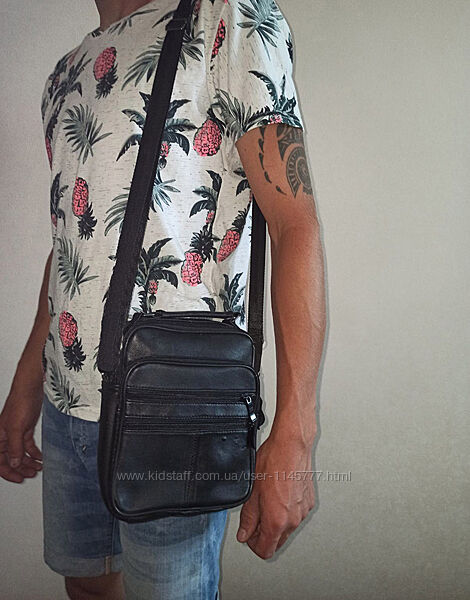 Подробное описание: Чоловіча шкіряна сумка через плече 8723es чорна вмістка барсетка 22х18см