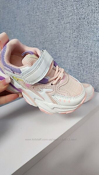 Кросівки на дівчаток для повсякденного носіння.Стильні та зручні, легенькі.Матеріал верху-штучна шкіра, підошва -піна.Ніжка фіксується липучкою.Розміри в наявності:26- 15,5 см