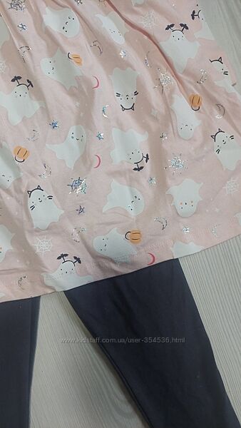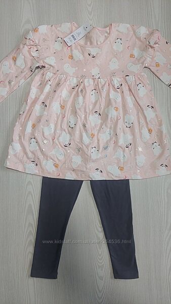 Комплект George 5-6 зріст 110-116 см. Повномірний! Заміри: лосіни довжина по боковому шву - 59 см., шаг - 40 см., талія - 26 см. Туніка: довжина спереду від плеча - 52 см., ПОГ - 33 см., рукав від горловини 47 см., цде чуть припущений не по плечах. Склад 100% бавовна, мякий, зручний, приємний до тілаКод товару Я1*28