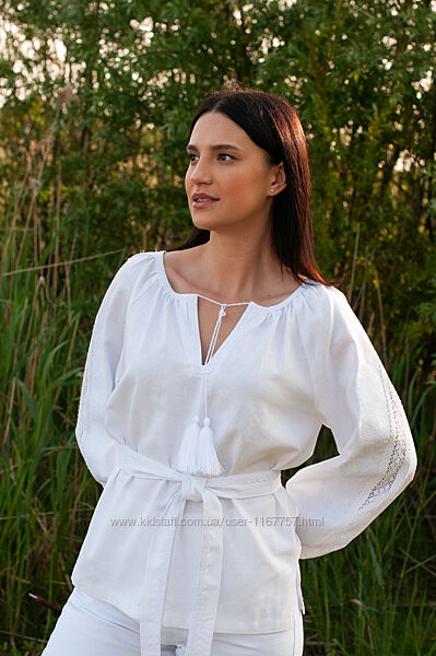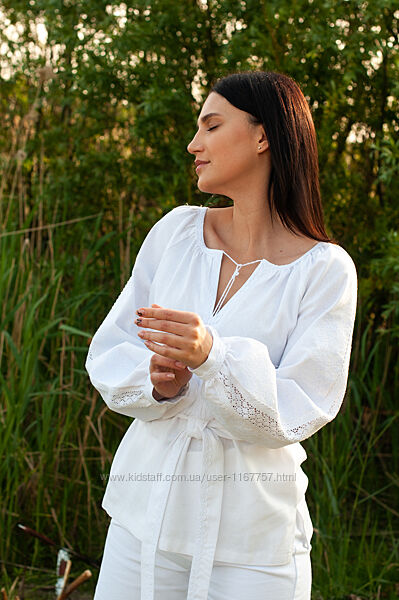Вбрання з вишуканою вишивкою "Вишиванка жіноча білим по білому " завжди берегли для особливих днів: сімейних заходів, церковних свят та різних урочистостей. Слідуйте традиціям та враховуйте свій настрій - можете одягти ошатну блузу на свято, а хочете –зробіть буденну прогулянку по місту святковою. В будь-якому випадку обирайте блузу, декоровану автентичною українською вишивкою. Вона виконана нитками, що на полотні виглядають ще більш урочисто. Такі сорочки з давних-давен вважалися особливими, а до їх виготовлення долучалися лише майстрині- віртуози.