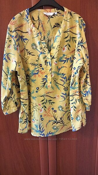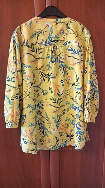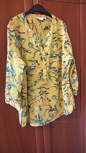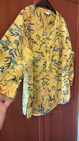 Літня блуза в яскравому жовтому кольорі з рукавом 3/4. Виготовлена з бавовни 100%. Нагрудні кишенькі, до середини на гудзиках, невеличкі розрізи по боках. Розмірах XL-XXL. Орієнтуйтесь по замірахН/о груди-58см