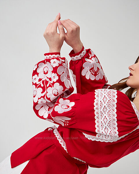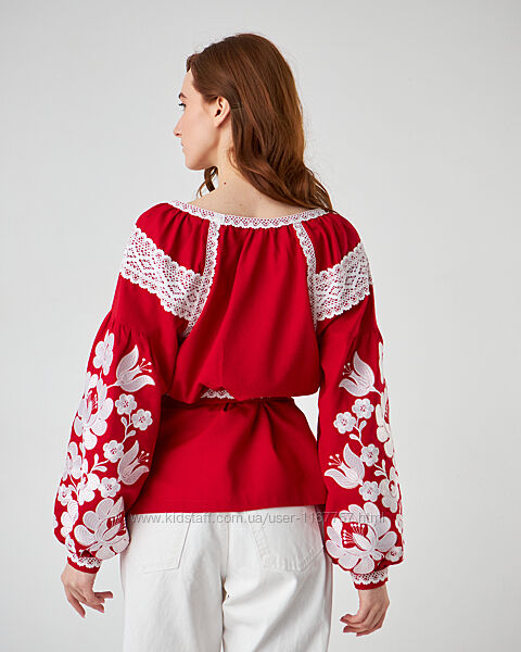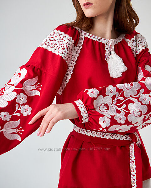Вбрання з вишуканою вишивкою "Конвалія " червона завжди берегли для особливих днів: сімейних заходів, церковних свят та різних урочистостей. Слідуйте традиціям та враховуйте свій настрій - можете одягти ошатну блузу на свято, а хочете –зробіть буденну прогулянку по місту святковою. В будь-якому випадку обирайте блузу, декоровану автентичною українською вишивкою. Вона виконана нитками, що на полотні виглядають ще більш урочисто. Такі сорочки з давних-давен вважалися особливими, а до їх виготовлення долучалися лише майстрині- віртуози.