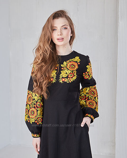 Подробное описание: Вишита жіноча сукня Жар птиця чорна