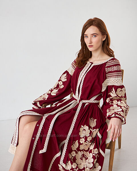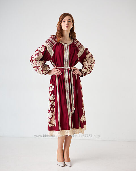 Подробное описание: Вишита жіноча сукня Конвалія бордо