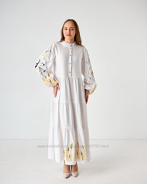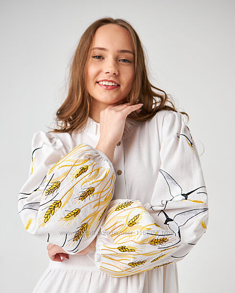 Подробное описание: Вишита жіноча сукня Ластівки біла