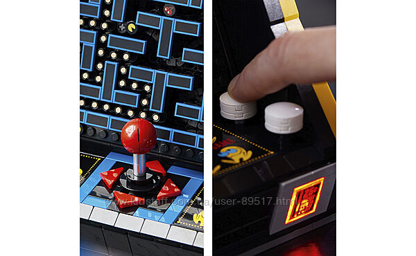 Точні деталі. Ця модель LEGO наповнена ретро-деталями та цікавими функціями, включаючи 4-позиційний джойстик і світловий слот для монет. Поверніть ручку, щоб активувати механічний лабіринт, який імітує класичну гонитву між вашими улюбленими персонажами, або відкрийте задню панель, щоб відкрити механічні елементи. Є навіть сцена, яку можна побудувати, з торговим автоматом 1980-х років із міні-фігуркою гравця та вітриною з обертовими фігурками Пакмена, Блінкі та Клайда.