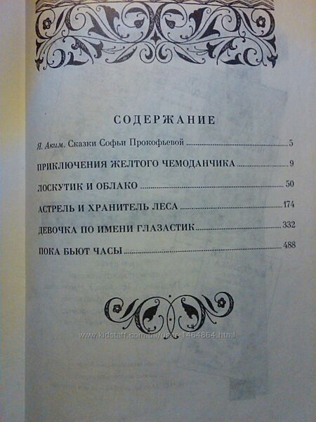 В сборник Софьи Леонидовны Прокофьевой вошли сказочные повести:«Приключения жёлтого чемоданчика». «Лоскутик и облако», « Астрель и Хранитель леса», «Девочка по имени Глазастик» и «Пока бьют часы». Книга рассчитана для детей среднего школьного возраста. Серия «Детская всемирная библиотека». Сказки Софьи Прокофьевой завоевали своё прочное место в детской литературе. Увлекательные приключения, такие неожиданные свежие выразительные образы, поэтичные, полные