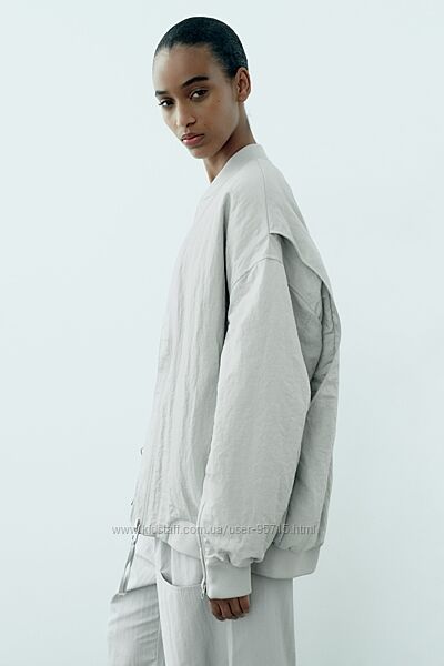 Подробное описание: Нейлоновая деми куртка бомбер оверсайз Zara - XS