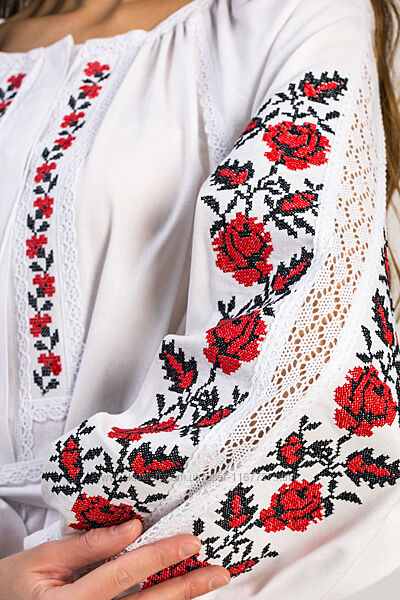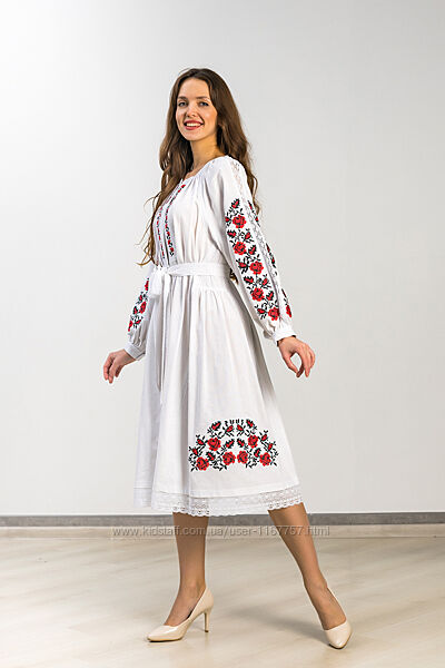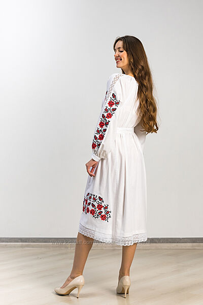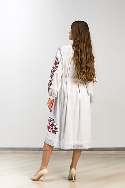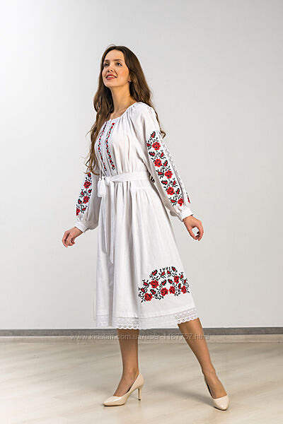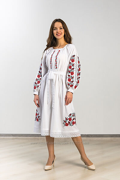 Подробное описание: Вишита жіноча сукня Троянда клин біла