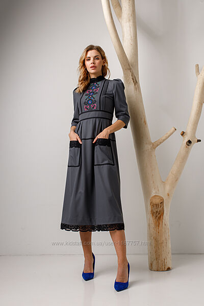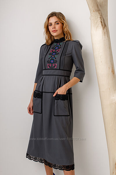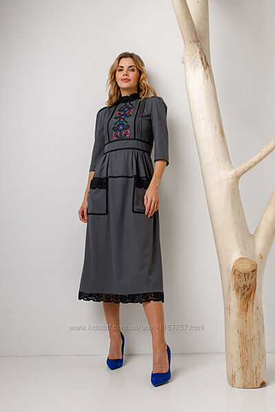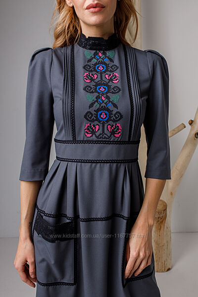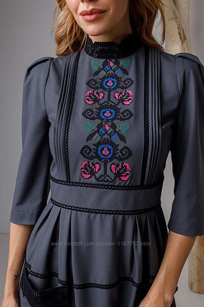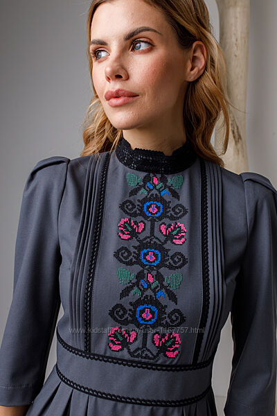 Подробное описание: Вишита жіноча сукня Богутська сіра