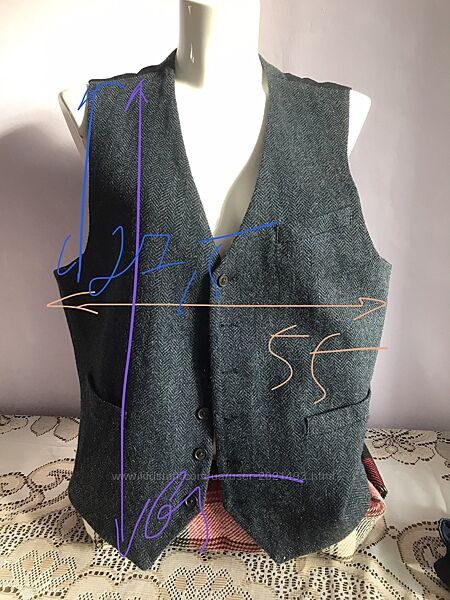 Стильний жилєт в рубчик полушерстяний 44R смзаміри на фотоШерсть/поліестр/акріл/нейлон/віскоза