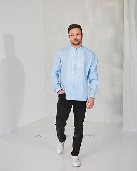 Подробное описание: Чоловіча вишиванка Сокальська блакитна
