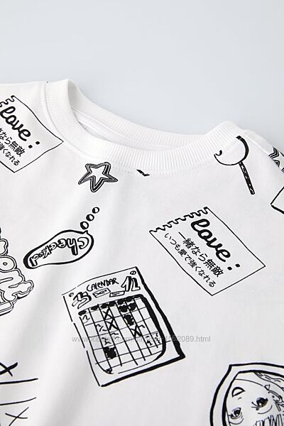 Крой свободный. Цвет- белый с оригинальными рисунками и надписями.