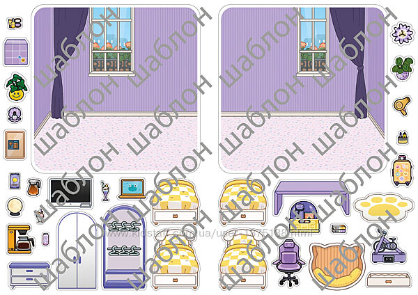 БАГАТО ОКРЕМИХ ДЕТАЛЕЙ - ЛАВАНДОВИЙ будиночокТока бока TOCA boca на липучках Електронний шаблон