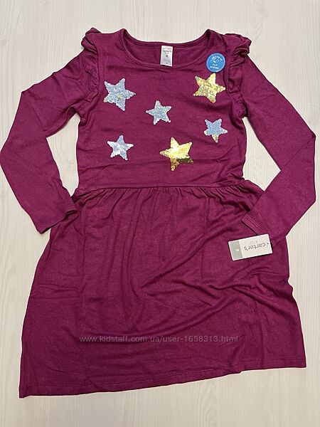 Фото 3-6. Плаття carters демісезонне. На дівчинку 7-8 років. Тканина приємна на дотик, струїться по тілу, не мнеться. 74% віскози у складі. Паєтки перевертаються. Ціна 450 грн.