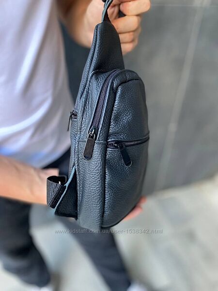 Подробное описание: Сумка на плече, слінг шкіряна, з натуральної шкіри чорна