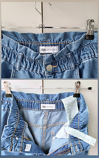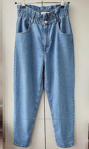 Модные женские джинсы Мом ZARA (Bangladesh) , пояс с резинкой голубого цвета.Оригинальные, практичные женские джинсы с высокой посадкой и свободной штаниной.Стиль модели: мягкие линии покроя Мом, свободное облегание в области бёдер и лёгкое сужение к низу ноги. Джинсы с эластичным поясом, сборками и высокой посадкой. Застегиваются на молнию и металлическую пуговицу спереди. Карманы спереди, накладные карманы сзади. Размер - XS/S ,замеры на последнем фото
