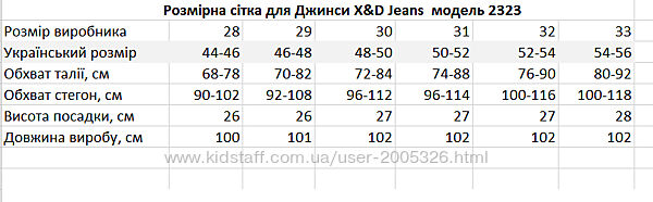 Джинси X&D Jeans Світло-блакитніРозмірна сітка на фото.