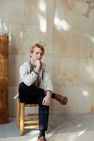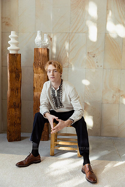 Чоловіча вишита сорочка (538) .Туанина - льон необроблений натурального кольору.