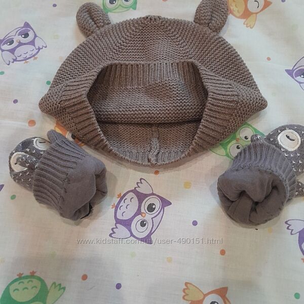 Деми шапочка с ушками и рукавичками на 2-4 года hm