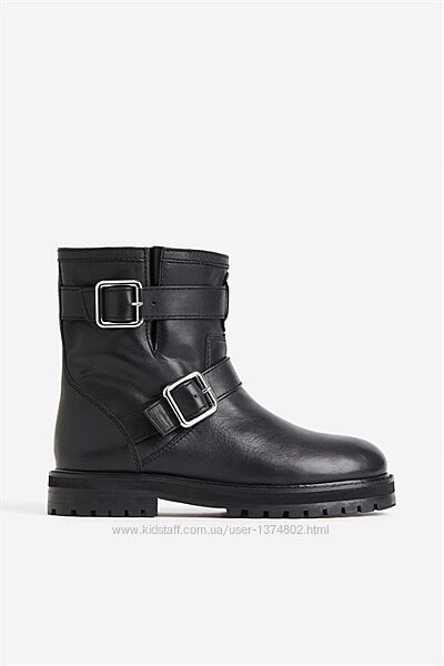 Жіночі чорні демісезонні байкерські черевики H&M розмір 39Ботинки з халявою до щиколотки та регульованими ременями з металевою пряжкою. Підкладка та устілка з трикотажу, профільна підошва. Висота підошви 2 см. Каблук 4 см.