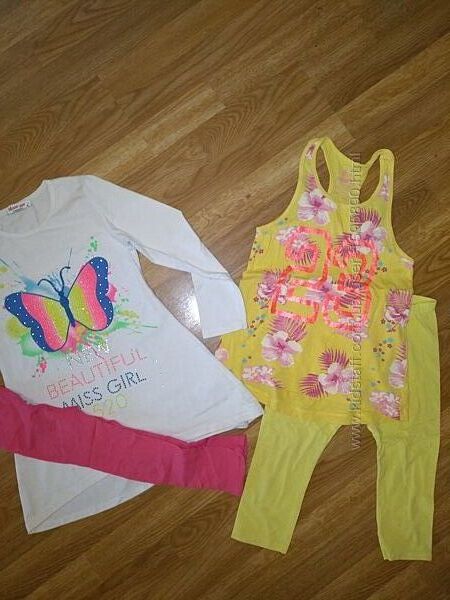 Майка Лосіни Костюм Комплект літній жовтий 122-128р.Скомбінований Майка Довжина 53см Ширина 35см Тонка бавовняна Довжина лосин 51см Крок 36см Пояс 28см Все в хорошому станіТуніка Лосіни продам комплектом 122-128р. Рукав 43см Довжина 61см Ширина 34см Довжина лосиків 58см Гарний стан