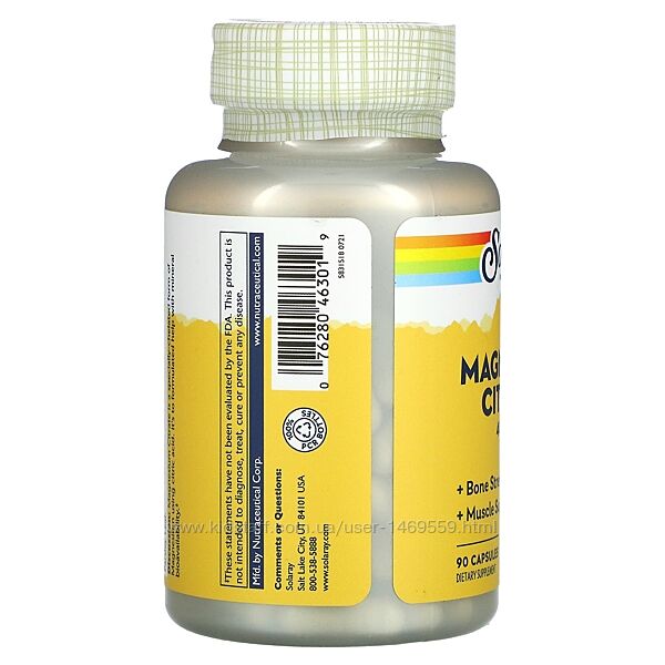 Подробное описание: Solaray цитрат магнію 400 мг 90 к 133 мг в 1 капсулі вітамін магне магній