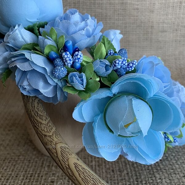 Подробное описание: Обруч квіти блакитний, обруч під вишиванку, віночок під вишиванку,