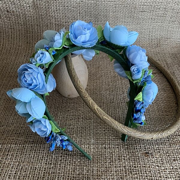 Обруч квіти блакитний, обруч під вишиванку, віночок під вишиванку,