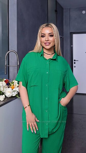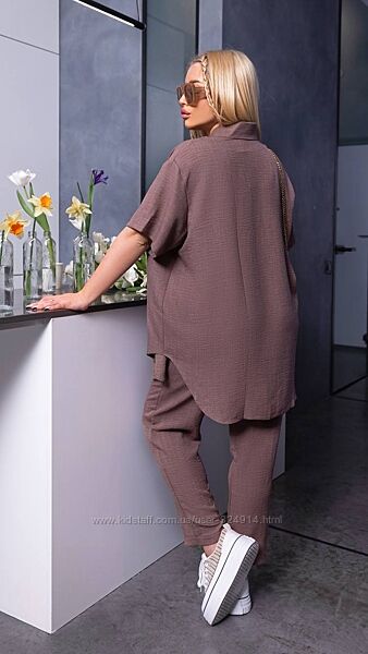 Супер стильный прогулочный костюм!Выполнен в свободном стиле! Брюки на резинке + рубашка с коротким рукавом Ткань легкая и тоненькая и не мнётся! Вы будите выглядеть в нем шикарно и немаловажно очень удобно! Как в повседневной жизни так и в праздничные!