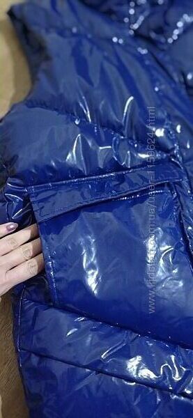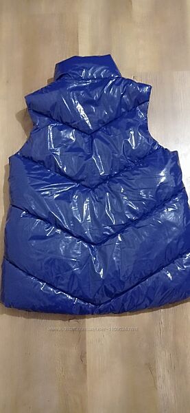 Жилетка красивого синего цвета, ткань с глянцевым блеском, утеплена. Карманы накладные, функционируют как сбоку,так и сверху. Застёгивается на молнию, сверху кнопки. Состояние новое. Сезон весна-осень. Подойдёт на размер 44-48. ЗамерыШирина под руками 52