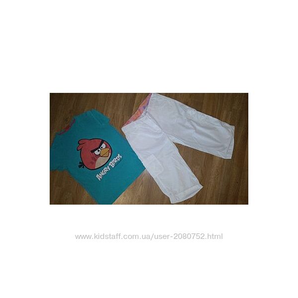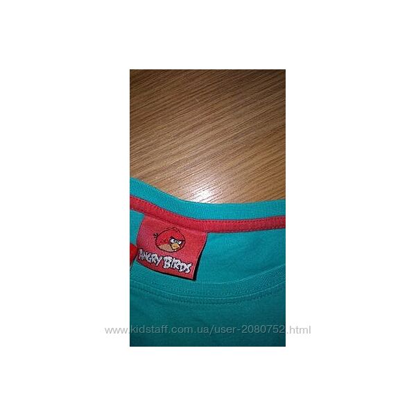 Костюм летний на 11-12 лет 146-152р. Angry birdsБирюзовая футболка Длина 57см ПОГ 42см Отличное состояние Хлопок