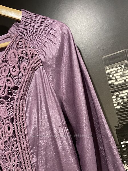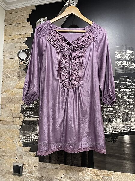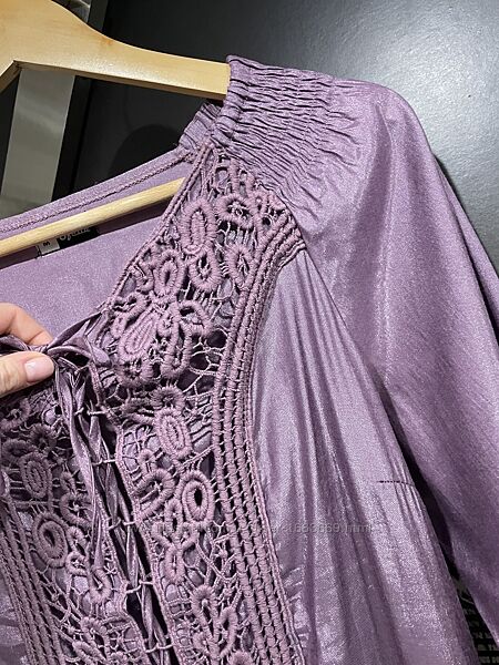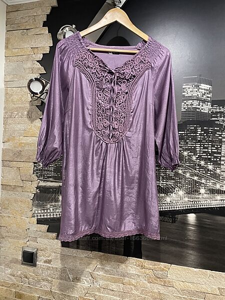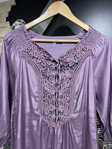 Якісна ефектна сорочка блуза данійського бренду Ofelia,дуже гарного бузкового кольору,тканина з переливом,фасон оверсайз,дуже красиво і дорого виглядає,розмір М,підійде і на L,мяка та приємна до тіла,склад:60%поліестер,40%віскоза,заміри:ПОГ 54 см,длина рукава от горловины 53 см,длина блузы 77 см