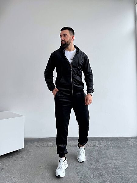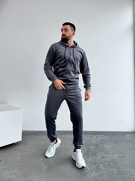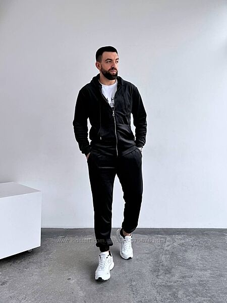 Костюм велюровий чоловічий кофта та штаниКофта на змійці з капюшоном та карманом кенгуру