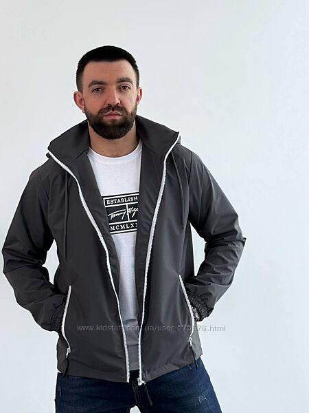 Вітровка чоловіча з капюшоном у коміріМатеріал: плащівка з просоченням + підкладка нейлон